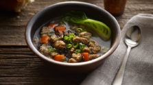 Top buttered dense whole grain bread with a chopped capers, dill and red onion cream cheese spread. Pile with warm hand-pinched Italian sausage, tangy w/garlic, sautéed mushrooms and basil pesto.